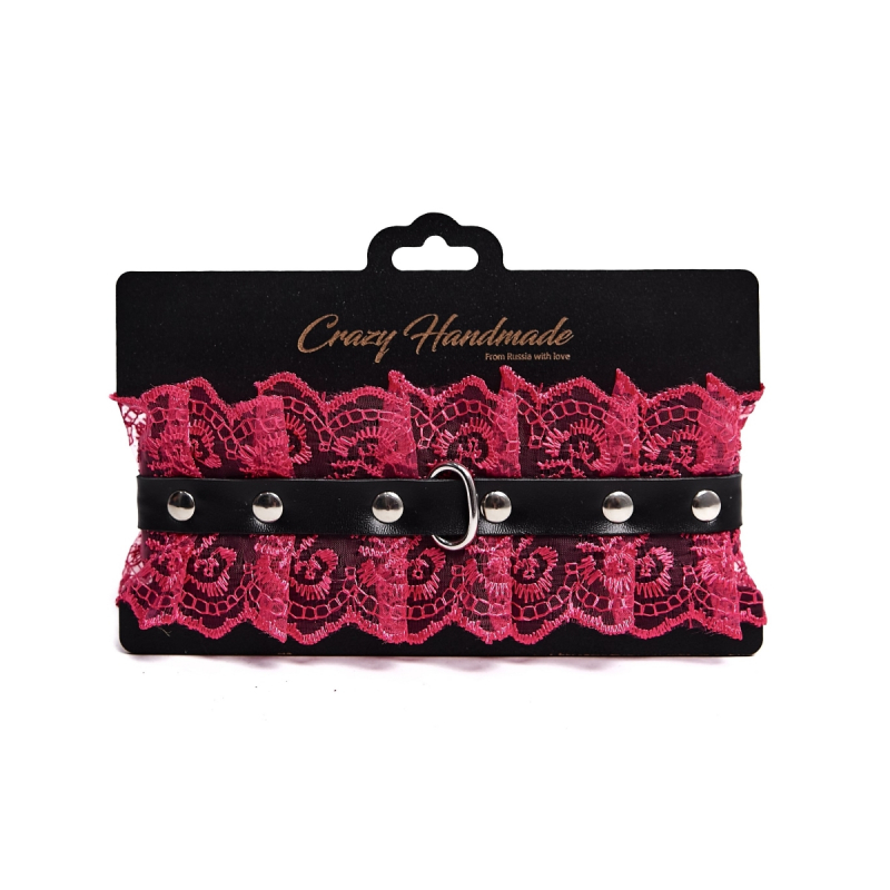 Ошейник выполнен из натуральной кожи и декорирован роскошным кружевом цвета фуксии! Сочетание кожи и кружева придает образу особенный шарм и выглядит мега провокационно!