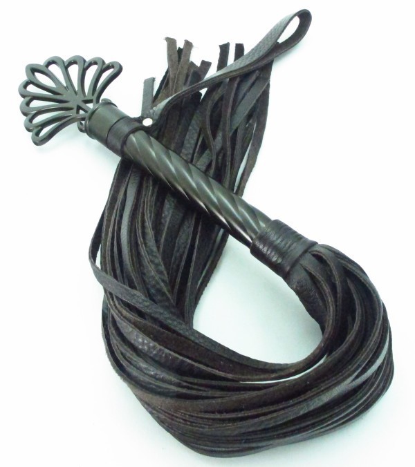 Выполнена плеть из потрясающей натуральной кожи в коричневом цвете. 40 мягких хвостов обеспечат незабываемые разогревающие удары! А, удобная металлическая рукоять-корона со специальной кожаной петлей - позволит, не только контролировать силу удара, но и доставит Верхнему истинное наслаждение держать ее в руках!
