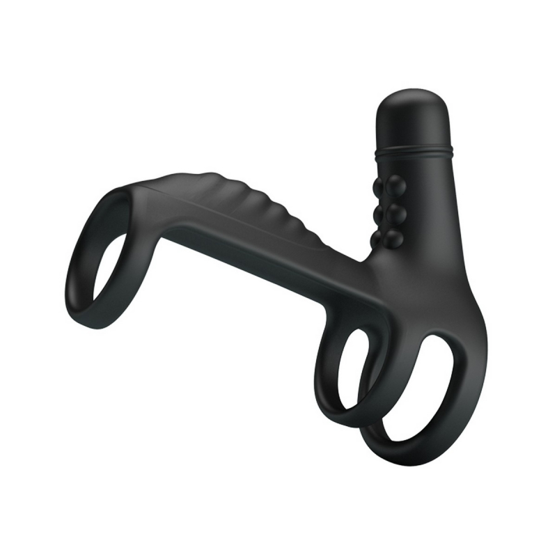 Девайс надевается на эрегерированный половой член при помощи эластичных силиконовых колец. Вибрирующая силиконовая поверхность при этом находится сверху на члене. Кольцо для мошонки надежно удерживает девайс на органе и усиливает мужчине стимуляцию. А, клиторальный стимулятор целенаправленно ласкает клитор при каждой фрикции, имитируя оральные ласки!