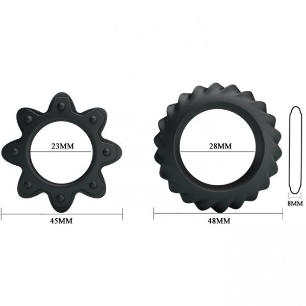 Выполнены кольца из медицинского силикона в черном цвете. Гипоаллергенные! Не имеют швов, стыков, посторонних запахов. По тактильным ощущениям барахатистые. Не пережимают, не передавливают половой член. Идеально расстягиваются на любой диаметр