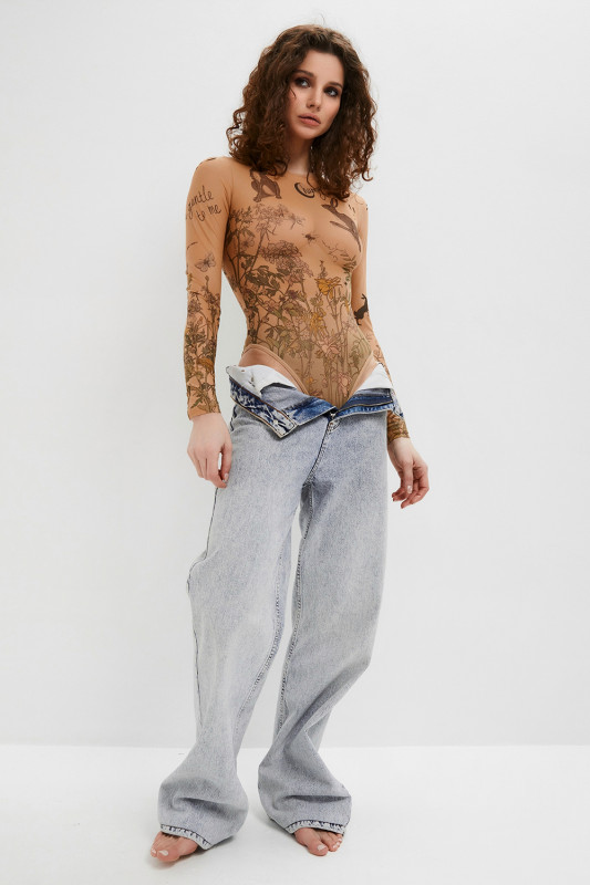 Боди "Brikoly Hunny Bunny" микросетка с эффектом тату, M