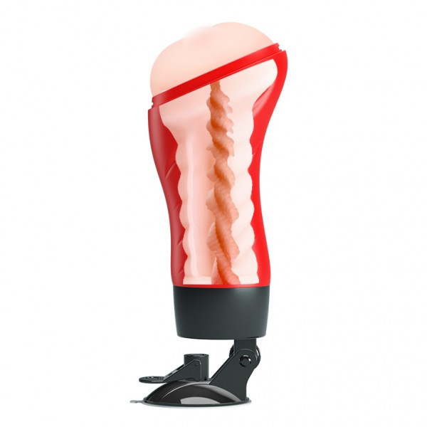 Мастурбатор помещен в тубус, выполненный из ABS-пластика в красном цвете. В основании тубуса имеется мощная присоска, которая позволяет его крепить к любой ровной поверхности! Но это еще не все! Специальное колесико позволит отрегулировать угол наклона, что даст возможность стимулировать половой член под каждым углом, имитируя различные позиции! Присоска съемная!