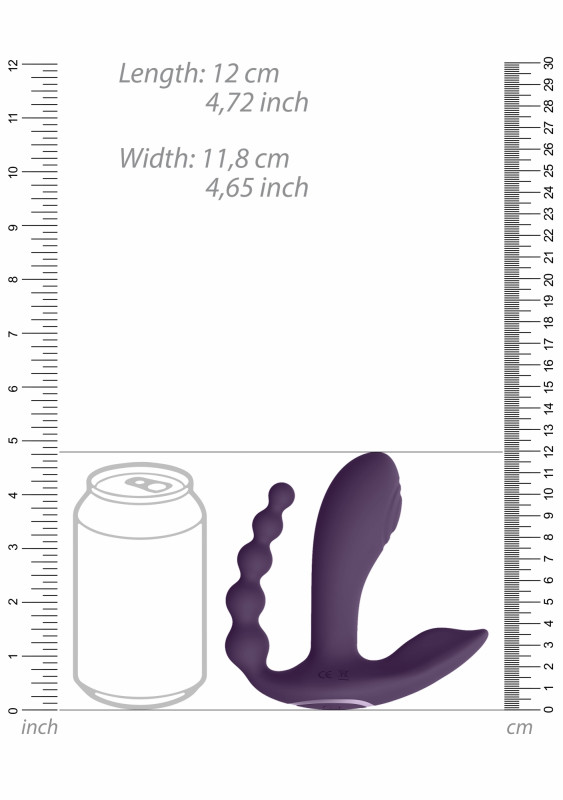 Вибратор с клиторальным и анальным стимуляторами "Vive Kata" на дистанционном управлении, фиолетовый